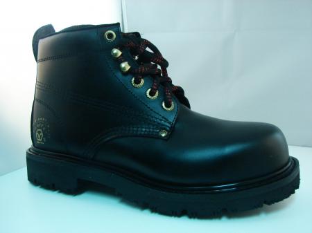 BOTA PIEL NAPA COLOR NEGRA, CON BULLON, CONSTRUCCIÓN GOODYEAR WELT, CON CASCO DE ACERO, SUELA TRACTOR (EVEREST NITRILO).